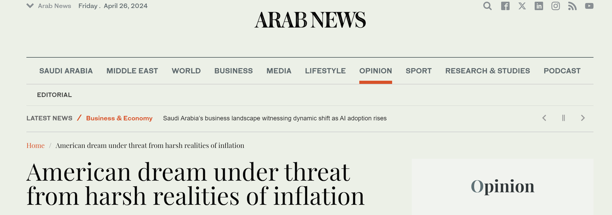 沙特阿拉伯媒體《阿拉伯新聞》網(wǎng)站4月24日刊發(fā)評(píng)論文章稱,美國(guó)通脹高企,物價(jià)不斷上漲,導(dǎo)致民眾的購(gòu)買(mǎi)力持續(xù)下降,基本生活消費(fèi)品成為無(wú)力負(fù)擔(dān)的“奢侈品”。“美國(guó)夢(mèng)”被殘酷的現(xiàn)實(shí)擊潰。文章批評(píng)美國(guó)政府對(duì)通脹危機(jī)的反應(yīng)嚴(yán)重不足,將黨派問(wèn)題置于解決民眾的迫切需求之上,削弱了民眾的信任感。