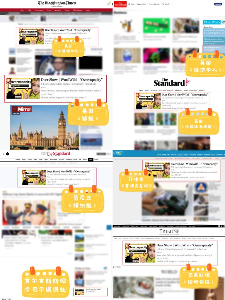 節(jié)目播出后,海外社交媒體瀏覽量突破百萬,被美國《華盛頓時(shí)報(bào)》、英國《鏡報(bào)》《倫敦標(biāo)準(zhǔn)晚報(bào)》《經(jīng)濟(jì)學(xué)人》、巴基斯坦《論壇快報(bào)》、菲律賓《星報(bào)》、肯尼亞《旗幟報(bào)》、吉爾吉斯斯坦卡巴爾通訊社等多家境外主流媒體轉(zhuǎn)載。