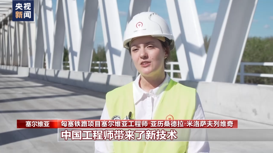 匈塞鐵路項目塞爾維亞工程師 亞歷桑德拉·米洛薩夫列維奇:中國工程師帶來了新技術(shù),比如中國的鋪軌技術(shù)。觀察這個過程,從中學習,并成為其中一分子十分有意義。