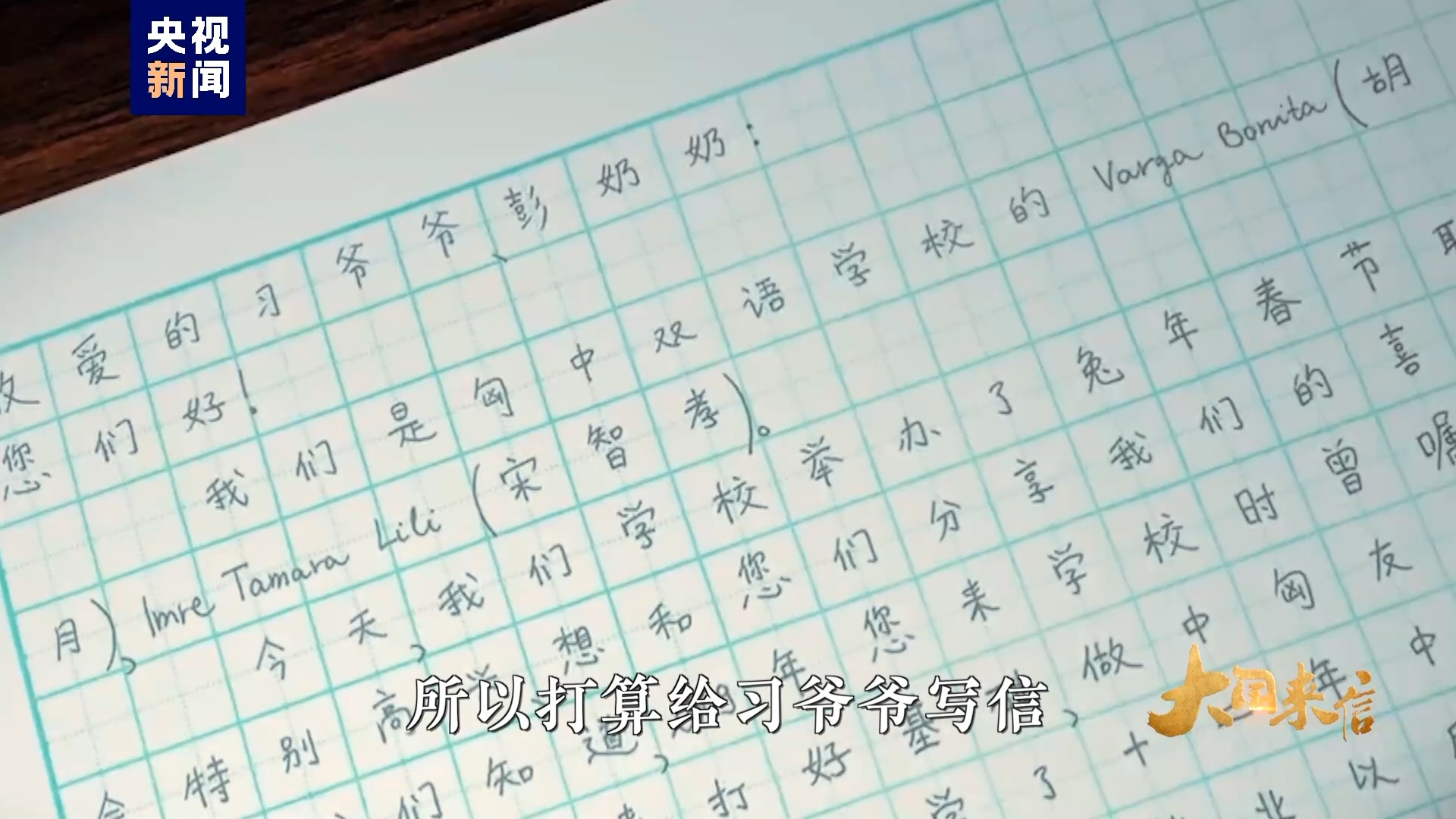 首都師范大學(xué)匈牙利留學(xué)生 胡靈月:2023年1月18日,我和宋智孝一起第二次獲得了中國大使獎(jiǎng)學(xué)金,非常高興和激動(dòng),特別想分享我們的喜悅。另外我們也想送上新春祝福,所以打算給習(xí)爺爺寫信。