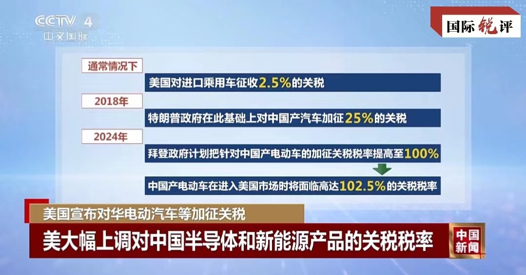 這其中,對(duì)中國(guó)電動(dòng)汽車加征的進(jìn)口關(guān)稅令人瞠目——從27.5%升至102.5%,對(duì)太陽能電池的進(jìn)口稅從25%提高到50%,對(duì)鋰電池的關(guān)稅稅率從7.5%提高到25%。不難看出,美國(guó)政府此次針對(duì)的重點(diǎn)是中國(guó)新能源相關(guān)產(chǎn)業(yè)。難怪美國(guó)多名高官近期密集炒作所謂中國(guó)新能源“產(chǎn)能過剩”,不過是為加征關(guān)稅制造借口。