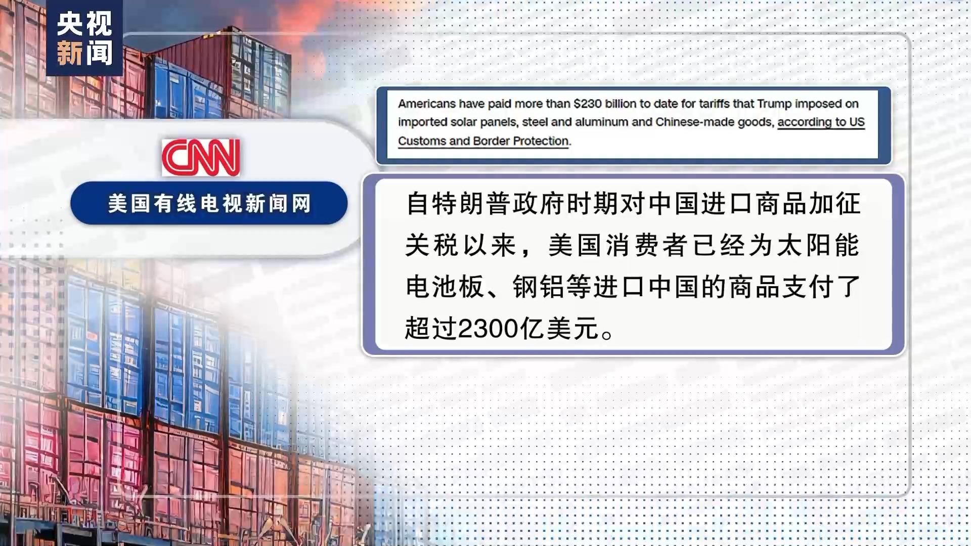 事實(shí)證明,美國(guó)保護(hù)主義措施無(wú)一例外只是“回旋鏢”式的自傷游戲。據(jù)美國(guó)有線(xiàn)電視新聞網(wǎng)3月引用美國(guó)海關(guān)及邊境保護(hù)局?jǐn)?shù)據(jù),自特朗普政府時(shí)期對(duì)中國(guó)進(jìn)口商品加征關(guān)稅以來(lái),美國(guó)消費(fèi)者已經(jīng)為太陽(yáng)能電池板、鋼鋁等進(jìn)口中國(guó)的商品支付了超過(guò)2300億美元。