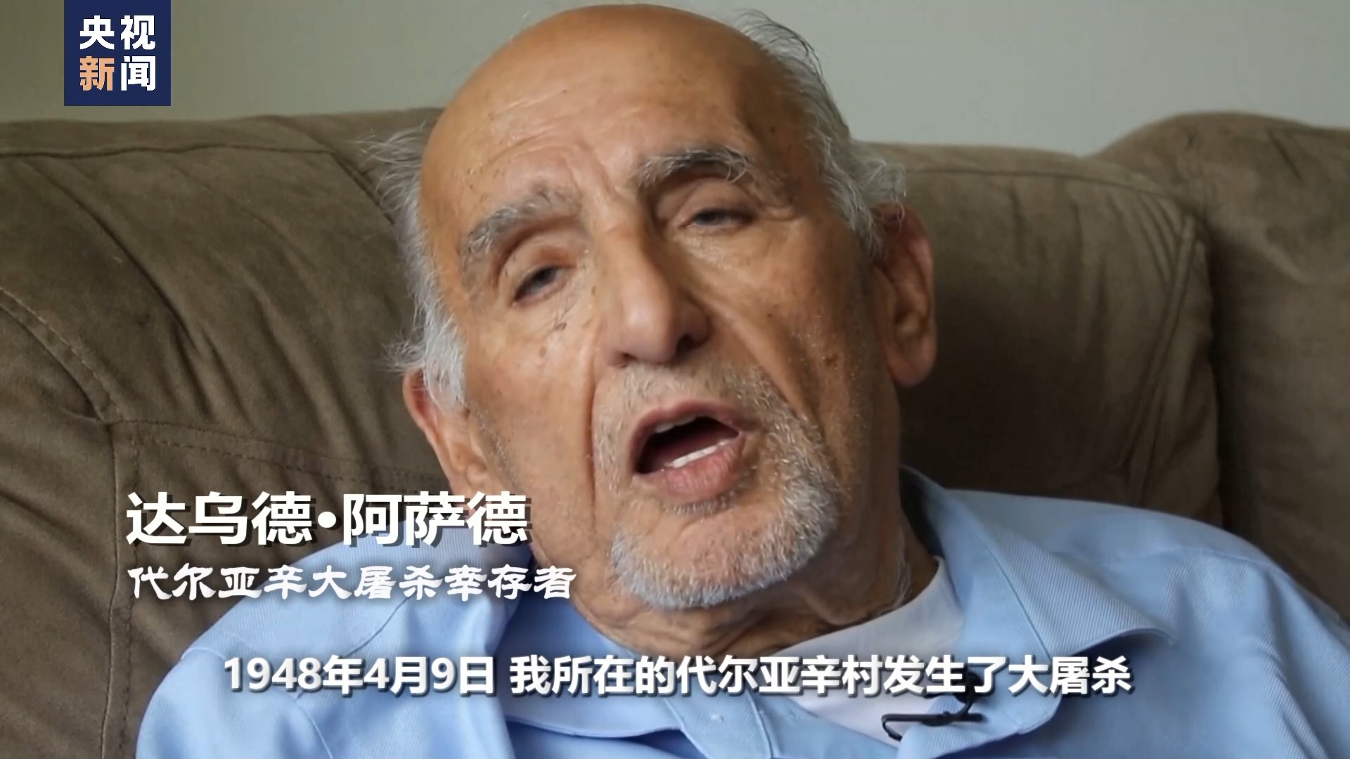 代爾亞辛大屠殺幸存者 達(dá)烏德·阿薩德:當(dāng)時(shí)巴勒斯坦有75萬(wàn)人遷走或逃離他們的家,因?yàn)樗麄兒ε骂愃拼鸂杹喰链宓氖虑闀?huì)發(fā)生在自己的身上。
