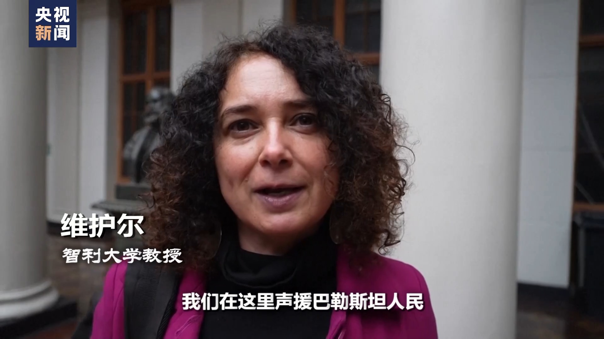 智利大學(xué)教授 維護(hù)爾:我們?cè)谶@里聲援巴勒斯坦人民,并譴責(zé)針對(duì)平民,尤其是婦女兒童所進(jìn)行的人權(quán)侵犯。