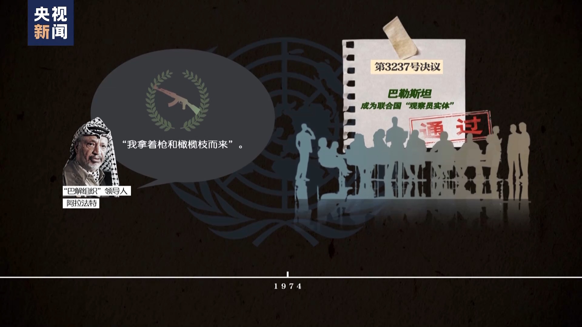 就在這次大會(huì)上,“巴解組織”領(lǐng)導(dǎo)人阿拉法特說(shuō)出了那句著名的“我拿著槍和橄欖枝而來(lái)”。