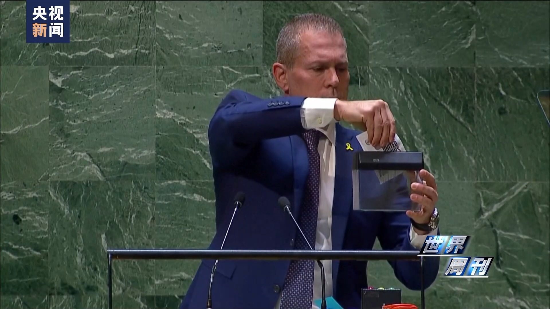 值得一提的是,聯(lián)大會(huì)場(chǎng)上還出現(xiàn)了驚人的一幕:以色列常駐聯(lián)合國(guó)代表埃爾丹掏出小型碎紙機(jī),將《聯(lián)合國(guó)憲章》封面插入其中當(dāng)眾粉碎。