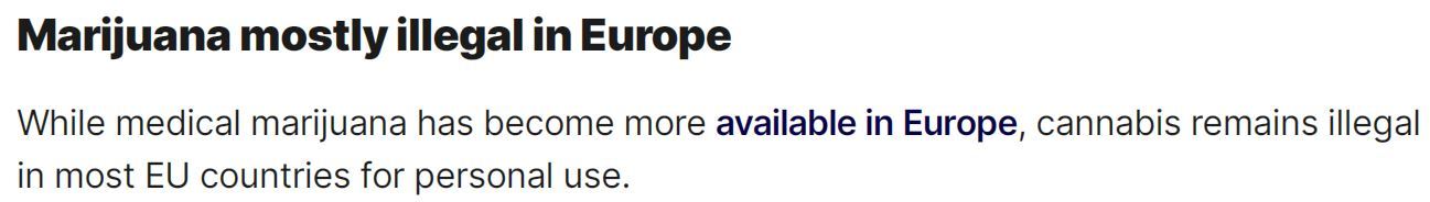 即使在毒品問題同樣嚴峻的歐洲,雖然醫(yī)用大麻越來越容易獲得,但在大多數(shù)歐盟國家,個人吸食大麻仍是非法行為。
