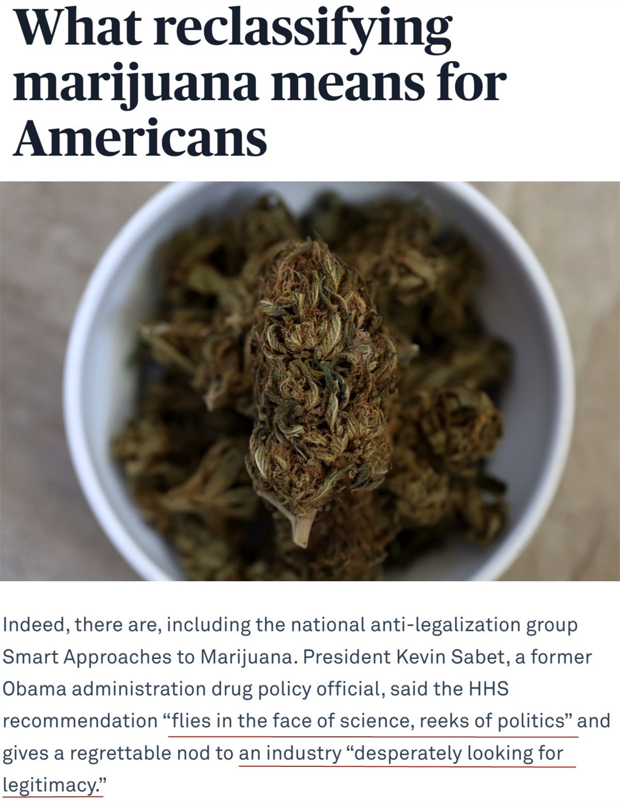 前白宮毒品政策官員凱文·薩比特批評稱,此舉“公然藐視科學,帶有政治意味”,等于是承認了一個“拼命尋求合法性”的行業(yè)。