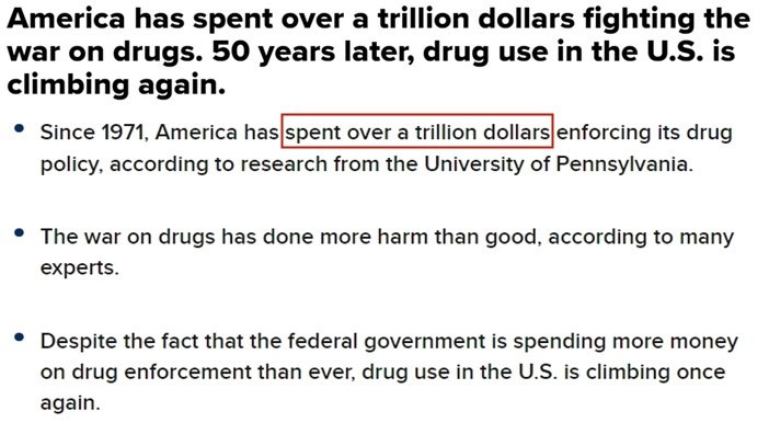 早在《聯(lián)邦管制物質(zhì)法案》出臺后的上世紀70年代,美國政府就曾高調(diào)對毒品“宣戰(zhàn)”,至今已為“禁毒”花了上萬億美元。