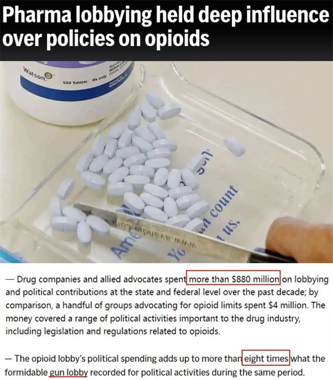 據(jù)美媒披露,為了阻止藥劑師更謹慎地開具處方、推動藥房快速售藥,阿片類藥物制造商和經(jīng)銷商在近十年內(nèi)共花費了8.8億美元用于“打通關系”,比美國槍支游說集團花的錢還要高8倍。
