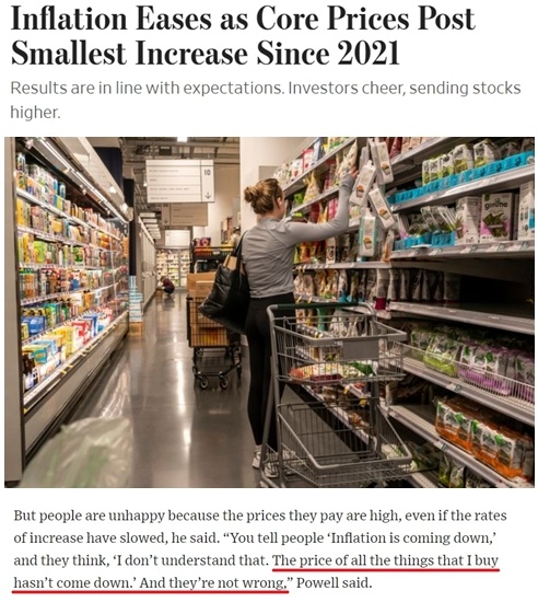 就連美聯(lián)儲(chǔ)主席鮑威爾也承認(rèn),雖然通脹率兩年來(lái)持續(xù)降低,但美國(guó)民眾并不高興,因?yàn)樗麄冎Ц兜纳唐穬r(jià)格仍很高,即使物價(jià)漲幅已經(jīng)放緩。