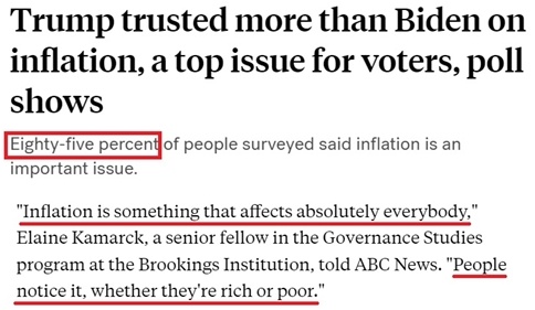 用布魯金斯學(xué)會(huì)高級(jí)研究員卡馬克的話說(shuō),“通脹是絕對(duì)會(huì)影響所有美國(guó)人的東西。人們都會(huì)注意到通脹,無(wú)論他們富裕還是貧窮”。