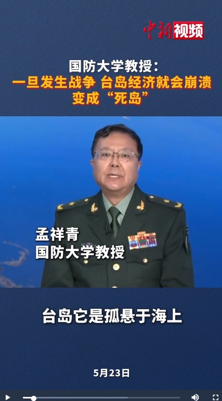 國防大學(xué)教授:一旦發(fā)生戰(zhàn)爭,臺島經(jīng)濟將瞬間崩潰,變成“死島”。本次演習直搗援助臺島的外部通道。