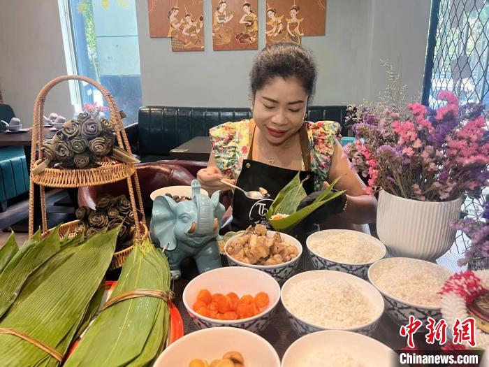 正值端午節(jié),歐春菊位于廣西南寧的泰式私房菜館賓客盈門(mén),她制作的泰國(guó)風(fēng)味粽子、冬陰功湯、菠蘿炒飯、青木瓜沙拉等美食,為當(dāng)?shù)孛癖姷亩宋绮妥涝鎏砹水愑蝻L(fēng)味。