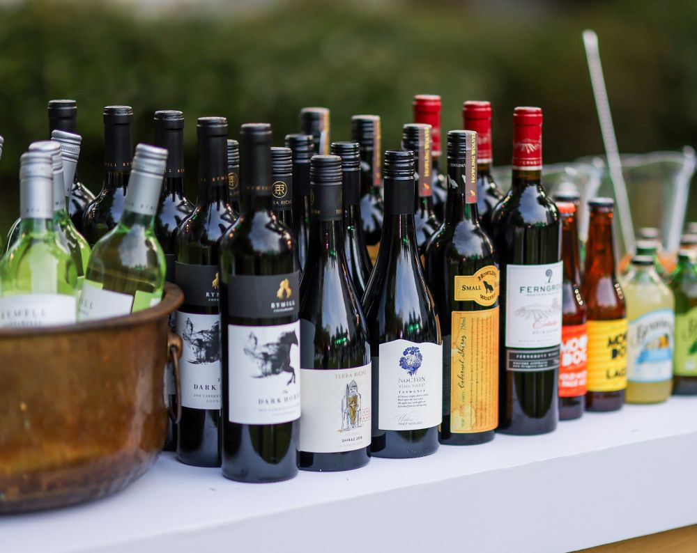 ↑這是6月13日在澳大利亞駐上海總領事館建館40周年招待會上拍攝的葡萄酒和其他飲品。