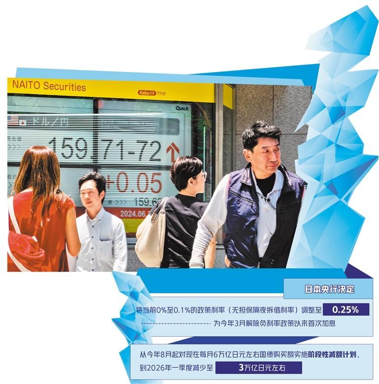 當(dāng)?shù)貢r(shí)間7月31日,日本央行舉行貨幣政策會(huì)議,決定將當(dāng)前0%至0.1%的政策利率(無(wú)擔(dān)保隔夜拆借利率)調(diào)整至0.25%。此次加息為今年3月解除負(fù)利率政策以來(lái)的首次加息。此外,日本央行還決定從今年8月起對(duì)現(xiàn)在每月6萬(wàn)億日元左右的國(guó)債購(gòu)買額實(shí)施階段性減額計(jì)劃,到2026年一季度減少至3萬(wàn)億日元左右。