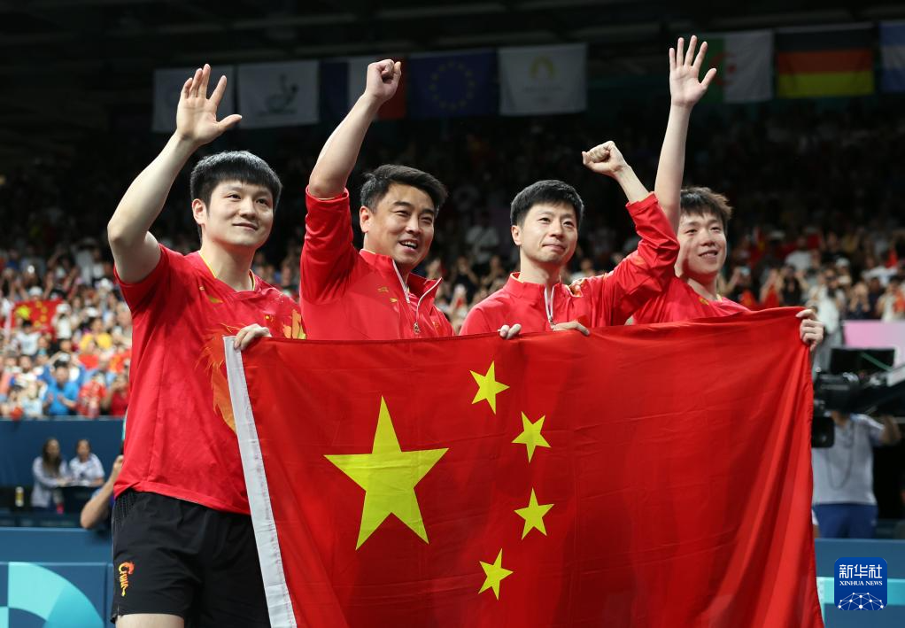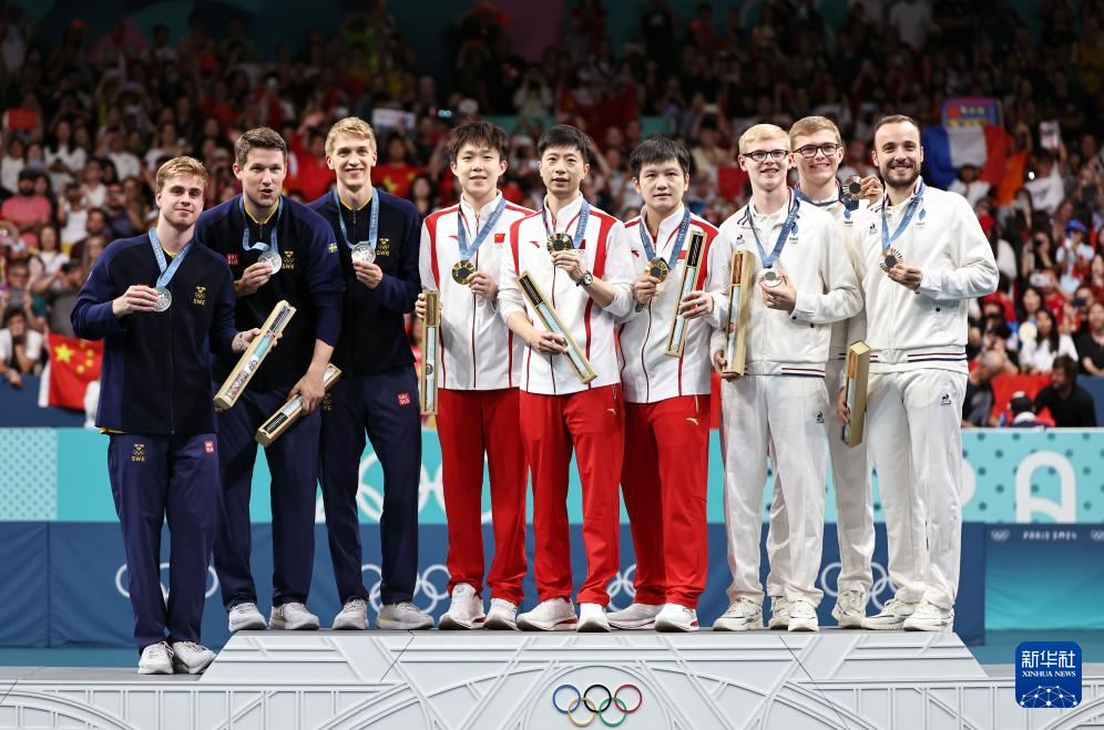當(dāng)日,在巴黎奧運會乒乓球男團(tuán)金牌賽中,中國隊?wèi)?zhàn)勝瑞典隊,獲得冠軍。