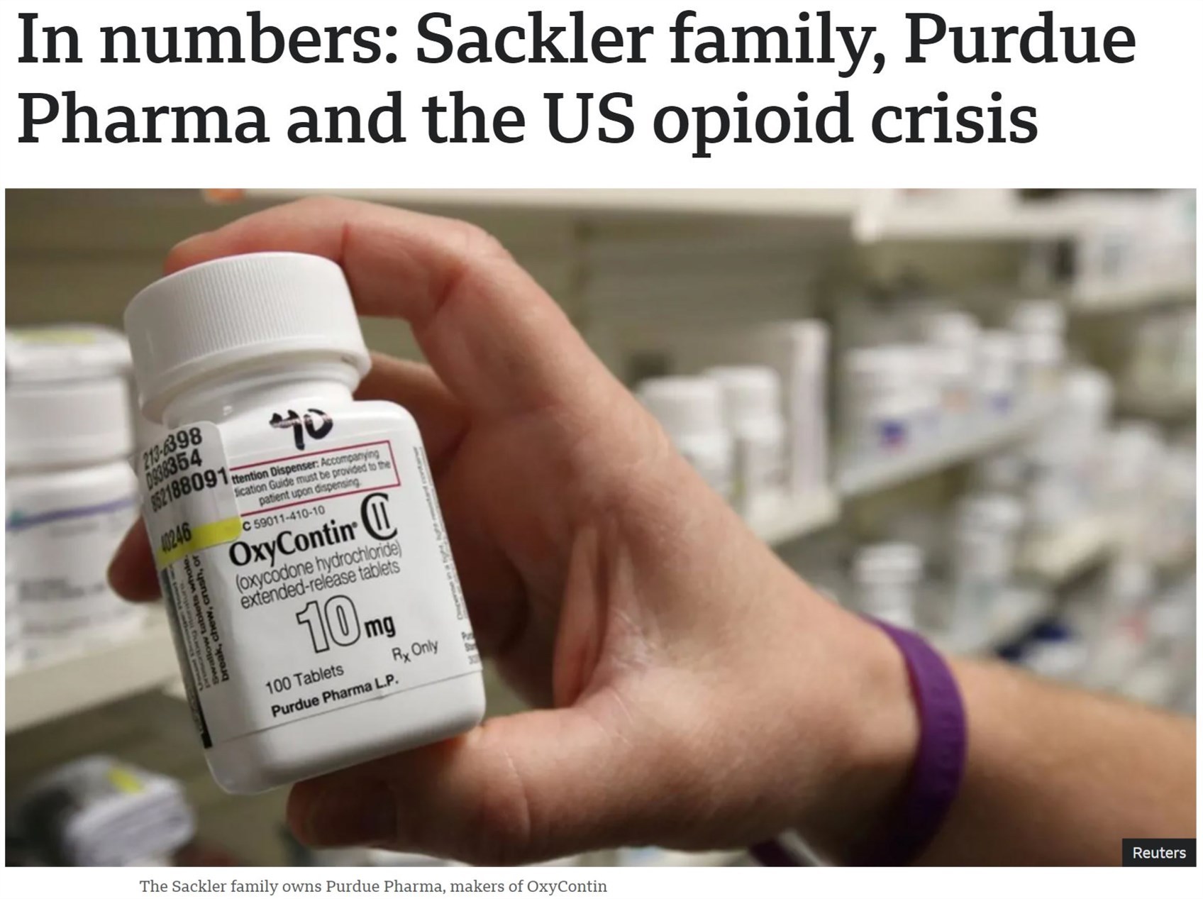 普渡制藥公司最終與美國(guó)司法部達(dá)成83億美元和解協(xié)議,對(duì)其阿片類止痛藥奧施康定遭到的三項(xiàng)重罪指控表示認(rèn)罪。和解協(xié)議還要求普渡制藥公司解體并轉(zhuǎn)型為一家新的提供成癮和過量治療藥物的公司。另外,普渡制藥公司的所有者薩克勒家族同意支付2.25億美元的民事責(zé)任賠償金。