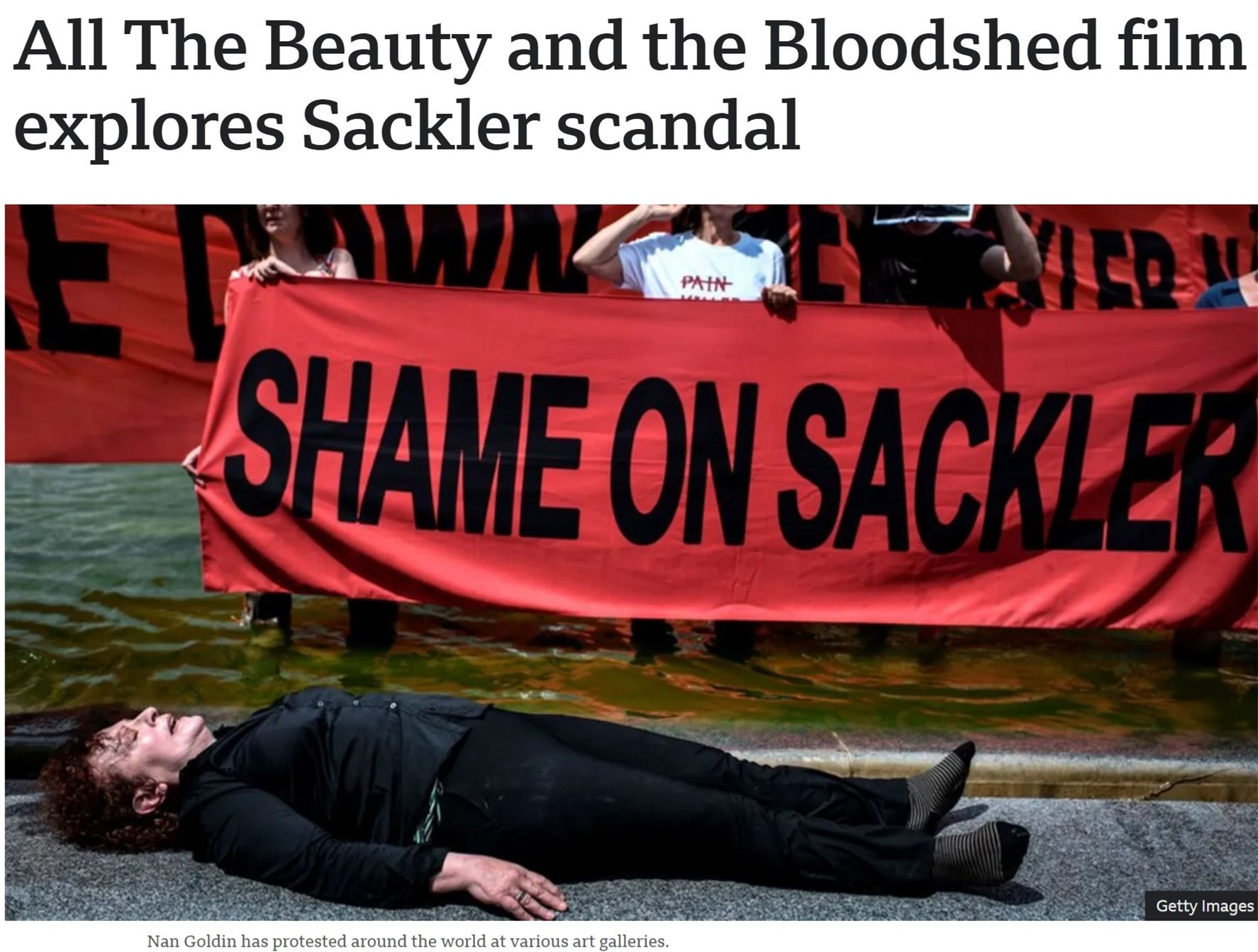 2018年,南·戈?duì)柖≌偌嗽S多跟她一樣的藥物成癮受害者,成立了藥物干預(yù)組織“疼痛”。在幫助飽受藥物成癮摧殘的人們走出泥潭的同時(shí),也組織他們針對(duì)與薩克勒家族有合作的博物館發(fā)起一系列的抗議活動(dòng)。
