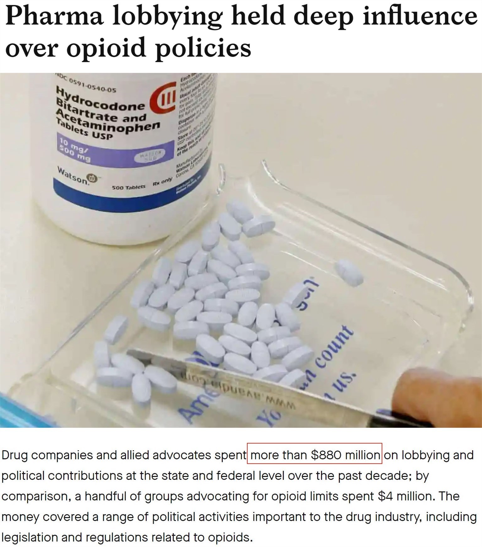 △美國(guó)公共誠(chéng)信中心網(wǎng)站報(bào)道:阿片類藥物制造商和經(jīng)銷商10年內(nèi)花費(fèi)8.8億美元用于游說和政治捐款,以阻止政府出臺(tái)相關(guān)限制措施。美國(guó)阿片類藥物危機(jī)專家克洛尼稱,這一花費(fèi)比美國(guó)槍支游說集團(tuán)的游說資金還要高8倍。