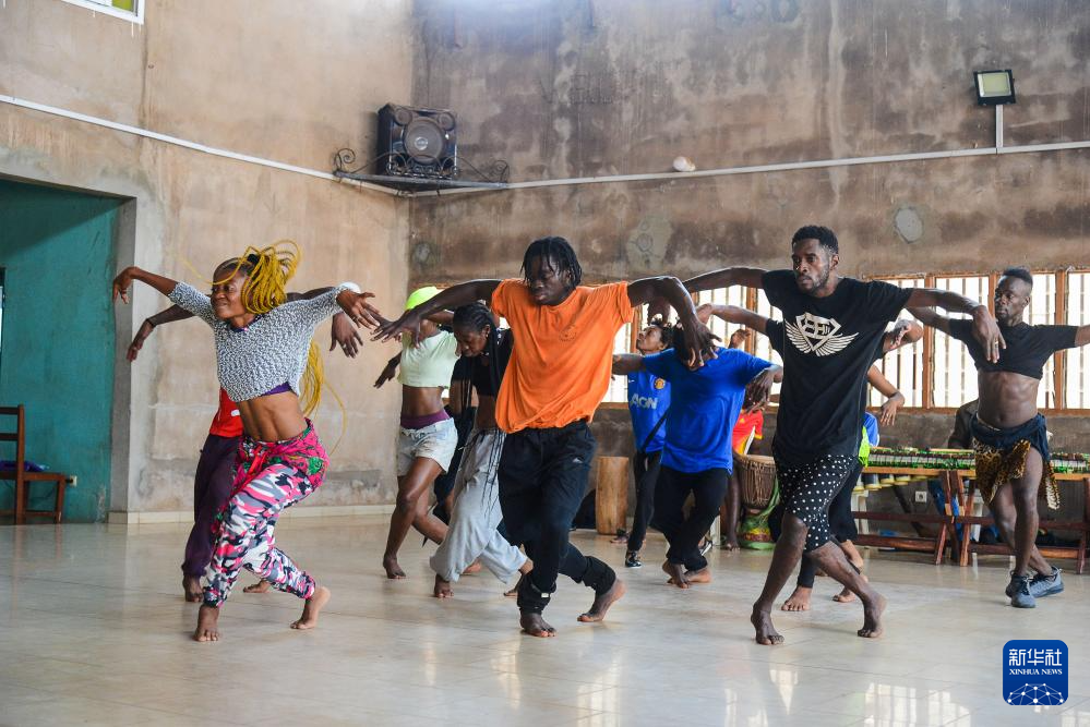 在喀麥隆首都雅溫得市郊一間舞蹈練習室內(nèi),一群年輕的非洲演員正身著當?shù)胤b、頭戴面具,伴隨著傳統(tǒng)樂器的節(jié)奏赤腳舞蹈。