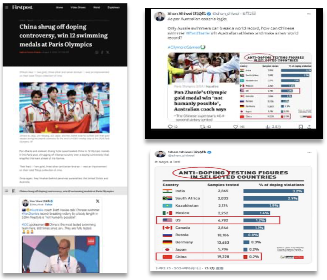 除了用及時(shí)的新聞消息擺出事實(shí),總臺(tái)各評(píng)論欄目節(jié)目鏗鏘發(fā)聲,深度起底美炒作興奮劑問(wèn)題的真實(shí)動(dòng)機(jī)?!皣?guó)際銳評(píng)”發(fā)布評(píng)論文章《美方必須就大規(guī)模使用興奮劑問(wèn)題給世界一個(gè)交代》,強(qiáng)調(diào)奧林匹克精神不能被“美式霸權(quán)”玷污,反興奮劑工作不應(yīng)淪為抹黑和打壓他國(guó)的工具;CGTN評(píng)論專欄《對(duì)話》《視點(diǎn)》《今日》等迅速反應(yīng),邀請(qǐng)多位中外業(yè)內(nèi)人士深度訪談,犀利剖析美國(guó)惡意污蔑中國(guó)運(yùn)動(dòng)員背后的險(xiǎn)惡用心;玉淵譚天譚主檢索分析美西方媒體今年以來(lái)的相關(guān)報(bào)道數(shù)據(jù),給國(guó)際檢測(cè)機(jī)構(gòu)(ITA)發(fā)送郵件獲取獨(dú)家回應(yīng),并且提取過(guò)去二十余年美國(guó)濫用興奮劑事件中的相關(guān)信息,還原美西方抹黑中國(guó)游泳隊(duì)的傳播鏈。