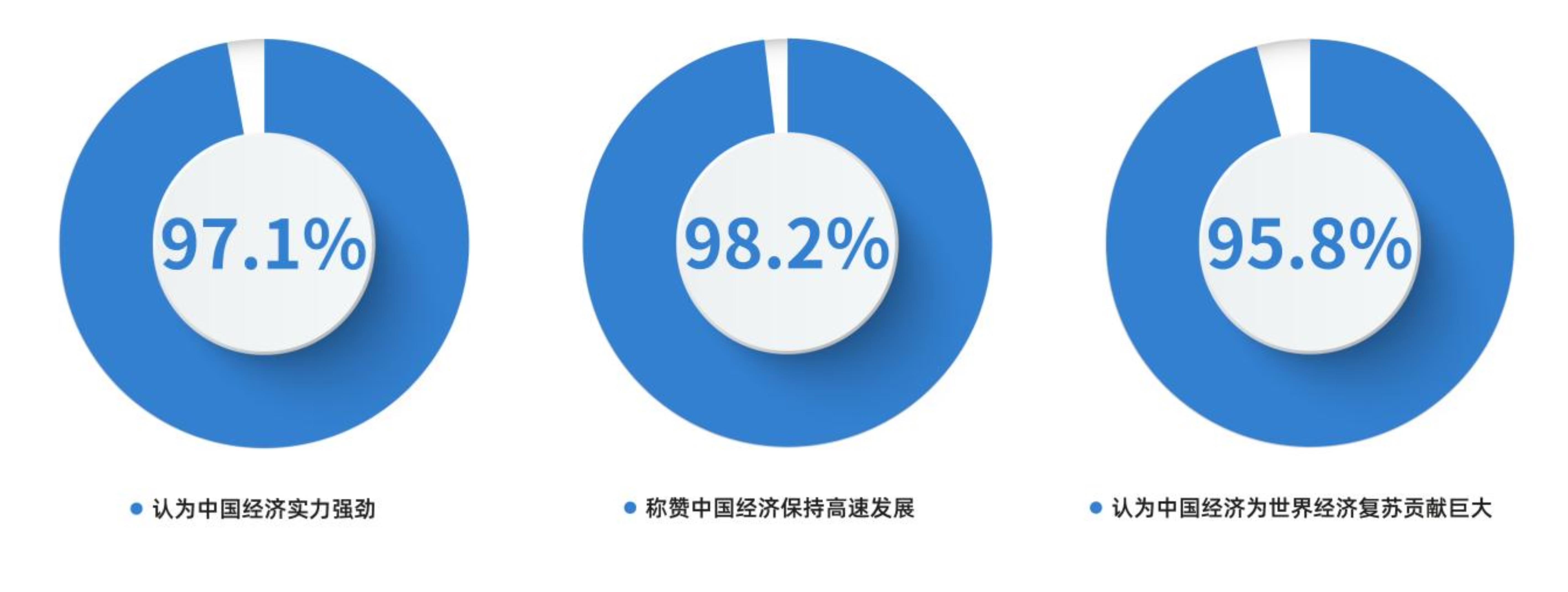 受訪(fǎng)青年超高的對(duì)華好感度主要源于對(duì)中國(guó)式現(xiàn)代化發(fā)展理念與成就的高度認(rèn)可,經(jīng)濟(jì)與科技領(lǐng)域表現(xiàn)尤為突出。調(diào)查中,97.1%的受訪(fǎng)青年認(rèn)為中國(guó)經(jīng)濟(jì)實(shí)力強(qiáng)勁,98.2%的受訪(fǎng)青年稱(chēng)贊中國(guó)經(jīng)濟(jì)保持高速發(fā)展,95.8%的受訪(fǎng)青年認(rèn)為中國(guó)經(jīng)濟(jì)為世界經(jīng)濟(jì)復(fù)蘇貢獻(xiàn)巨大。
