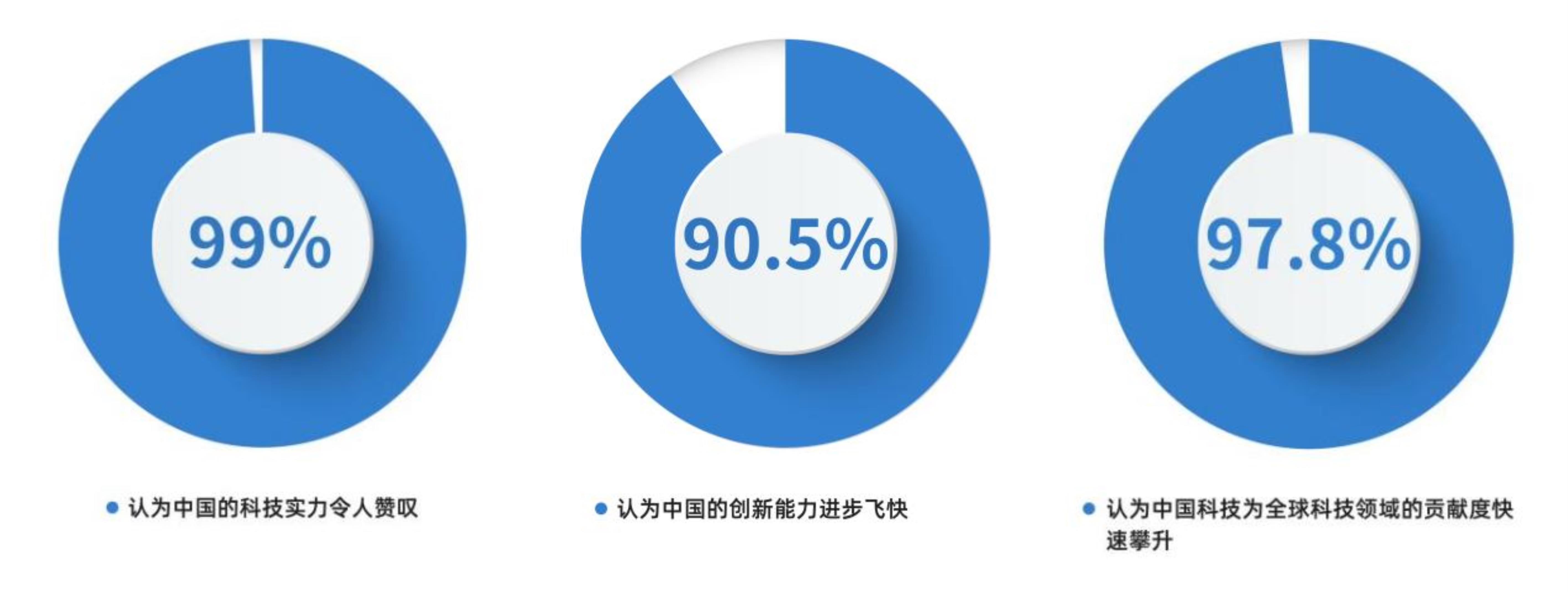 此外,99%的受訪(fǎng)青年認(rèn)為中國(guó)的科技實(shí)力令人贊嘆,90.5%的受訪(fǎng)青年認(rèn)為中國(guó)的創(chuàng)新能力進(jìn)步飛快,97.8%的受訪(fǎng)青年認(rèn)為中國(guó)科技為全球科技領(lǐng)域的貢獻(xiàn)度快速攀升。