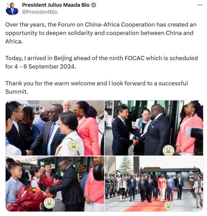 圖片來(lái)源:塞拉利昂總統(tǒng)比奧社交媒體賬號(hào)截圖