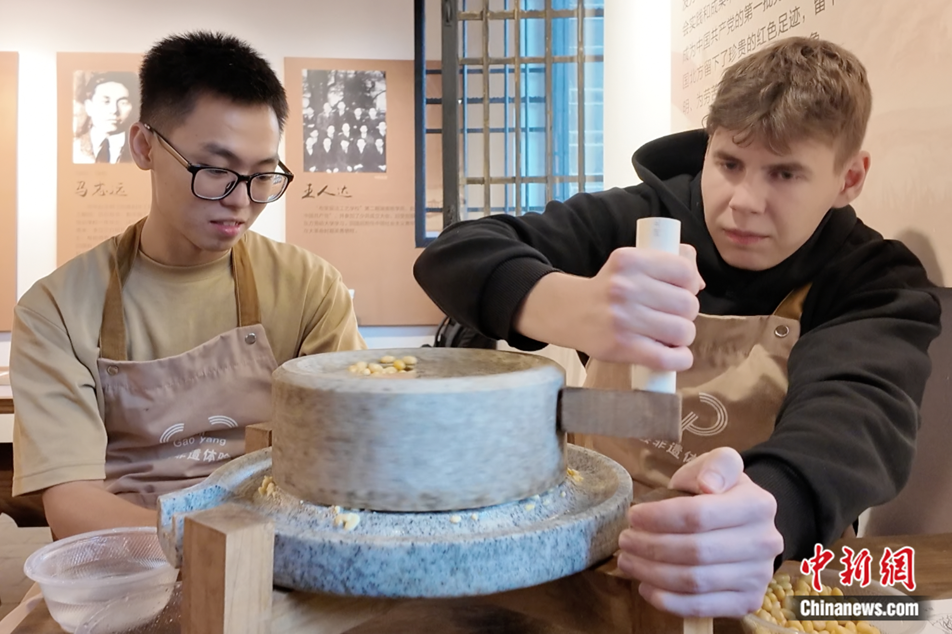 “洋弟子”體驗(yàn)豆腐制作。 張子怡 攝