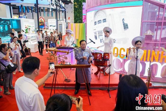 第21屆中國(guó)—東盟博覽會(huì)于9月24日至28日在廣西南寧舉行。圖為越南民族樂(lè)器表演吸引參觀者。陳冠言 攝