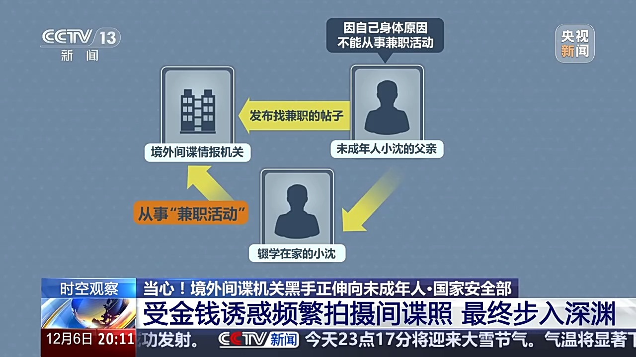 近年來,國家安全機關在案件偵辦中發(fā)現(xiàn),境外間諜情報機關常以網(wǎng)絡兼職、異性交友為名,通過網(wǎng)絡等渠道對未成年人實施勾連。鎖定目標之后,境外間諜情報機關會許諾提供報酬豐厚、內(nèi)容簡單的兼職機會,一步步誘導未成年人落入其設下的陷阱。