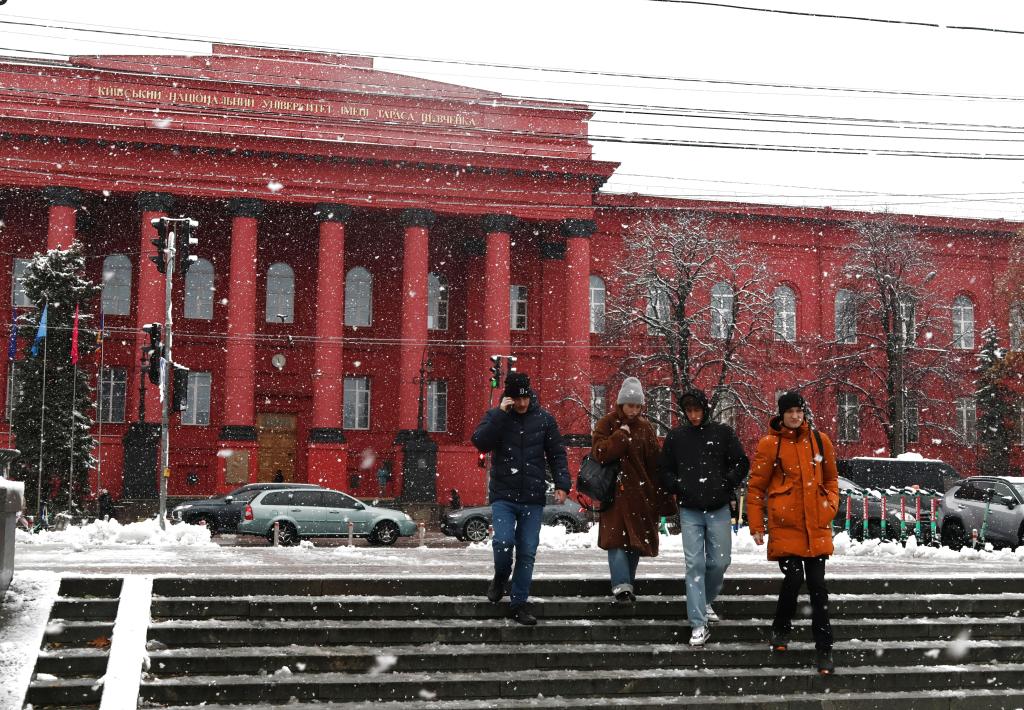 11月21日,在烏克蘭首都基輔,人們經(jīng)過國立基輔大學(xué)。新華社發(fā)(羅曼·佩圖什科夫攝)