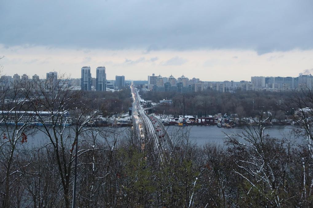 這是11月21日在烏克蘭首都基輔拍攝的白雪映襯下的地鐵橋和第聶伯河。當(dāng)日,烏克蘭首都基輔迎來今冬初雪。新華社記者李東旭攝