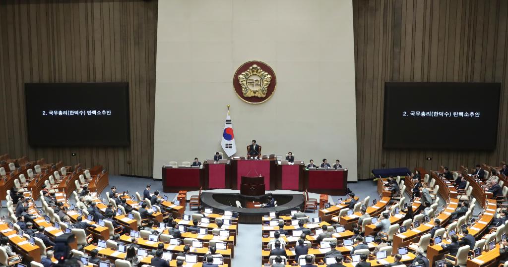 在韓國總統(tǒng)尹錫悅遭國會彈劾、國務(wù)總理韓德洙代行總統(tǒng)職權(quán)僅13天后,韓國國會27日下午以192票贊成通過針對韓德洙的彈劾動議案。