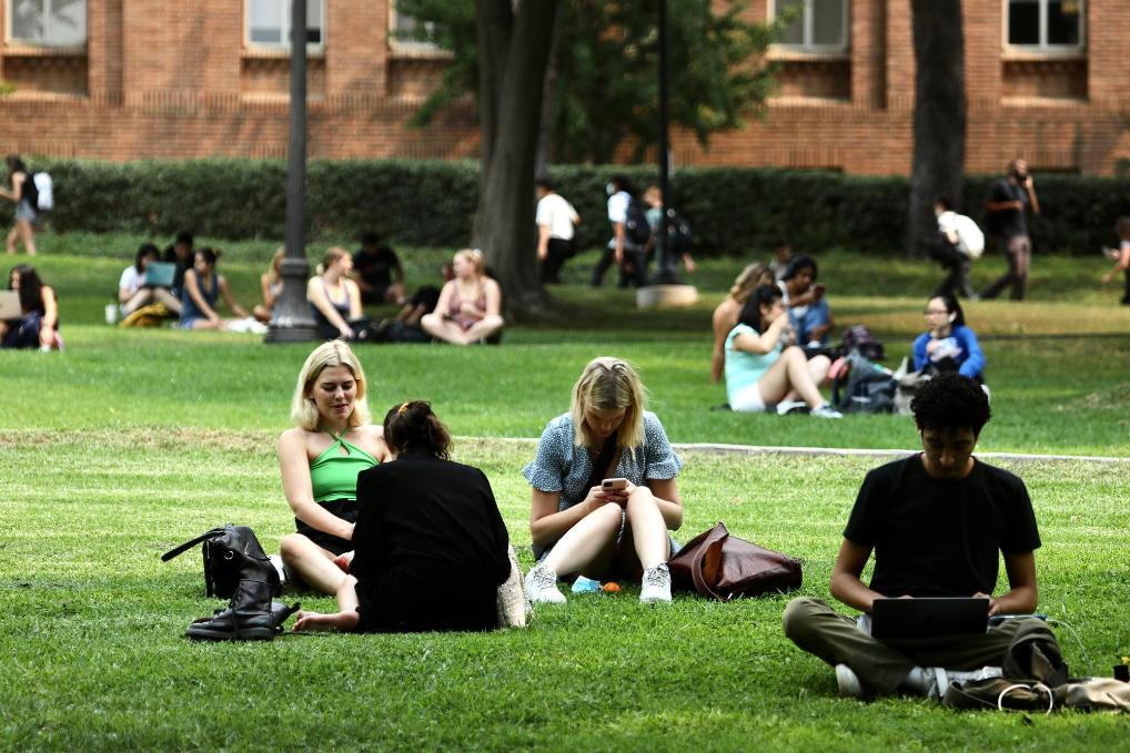 這是2021年9月23日在美國加州大學(xué)洛杉磯分校校園內(nèi)拍攝的學(xué)生。新華社發(fā)