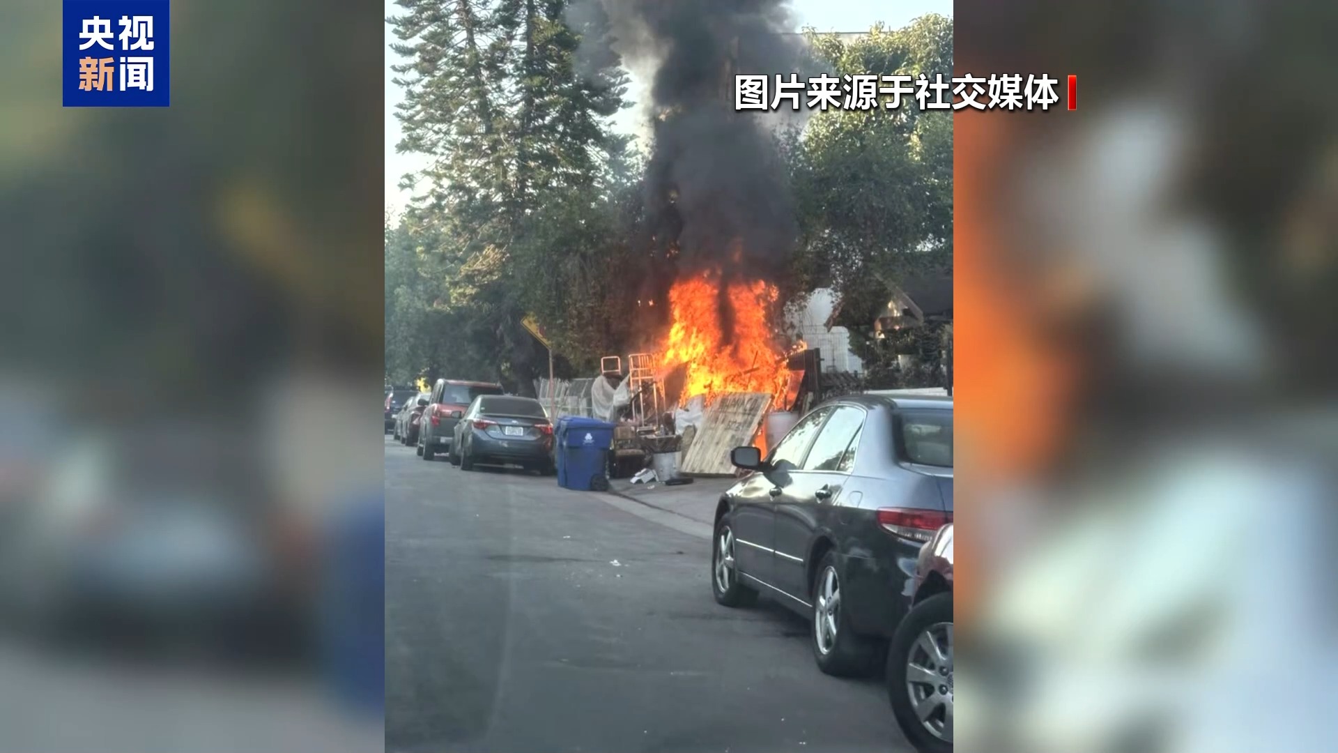 央視記者 劉驍騫:其次,我觀察到,小型的人為縱火案頻繁出現(xiàn)。這幾天,洛杉磯警方在市中心發(fā)現(xiàn)了好幾起疑似人為縱火的案件。例如,有人故意點燃街邊的垃圾,或者點燃市區(qū)道路邊的草叢。除了官方通報的情況外,我發(fā)現(xiàn)在洛杉磯本地的社交媒體上,甚至是我個人所處的社群信息共享頁面,都有不少居民講述甚至拍下他們發(fā)現(xiàn)疑似縱火的情況。這些社群也呼吁民眾在發(fā)現(xiàn)明火后立刻報警或者當面阻止撲滅。