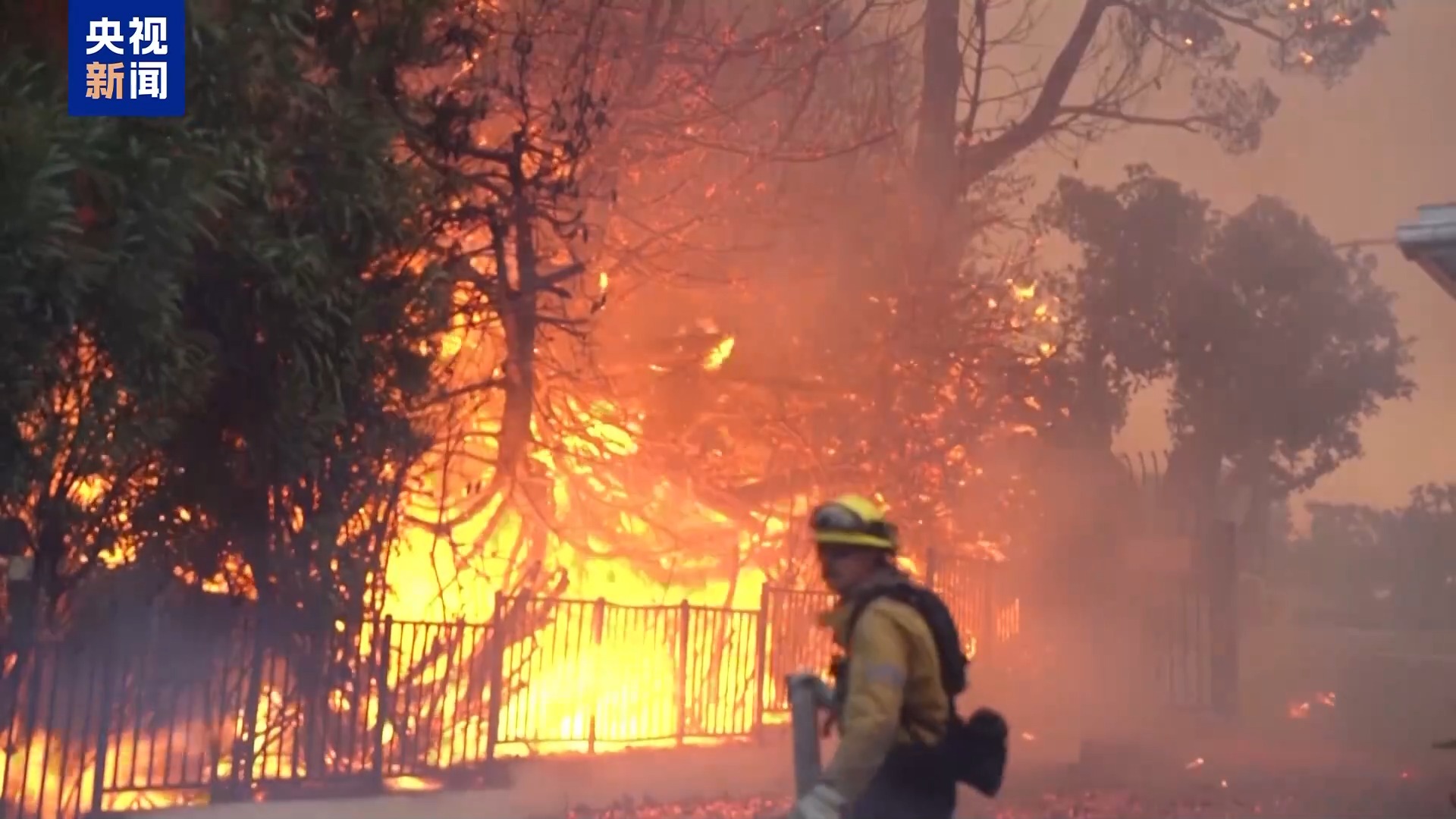 央視記者 劉驍騫:大家應該可以從我身后看到,天空中升騰起的巨大煙霧就來自太平洋帕利賽德山火,雖然火情得到了局部的控制,但是因為風向的變化,山火的行經(jīng)路線也發(fā)生了改變,正在向東邊,也就是洛杉磯市區(qū)的方向蔓延。而且根據(jù)氣象部門的預告,當?shù)貢r間11日的夜里到隔天的早晨會有大風天氣,所以火情的趨勢還需要進一步觀望。