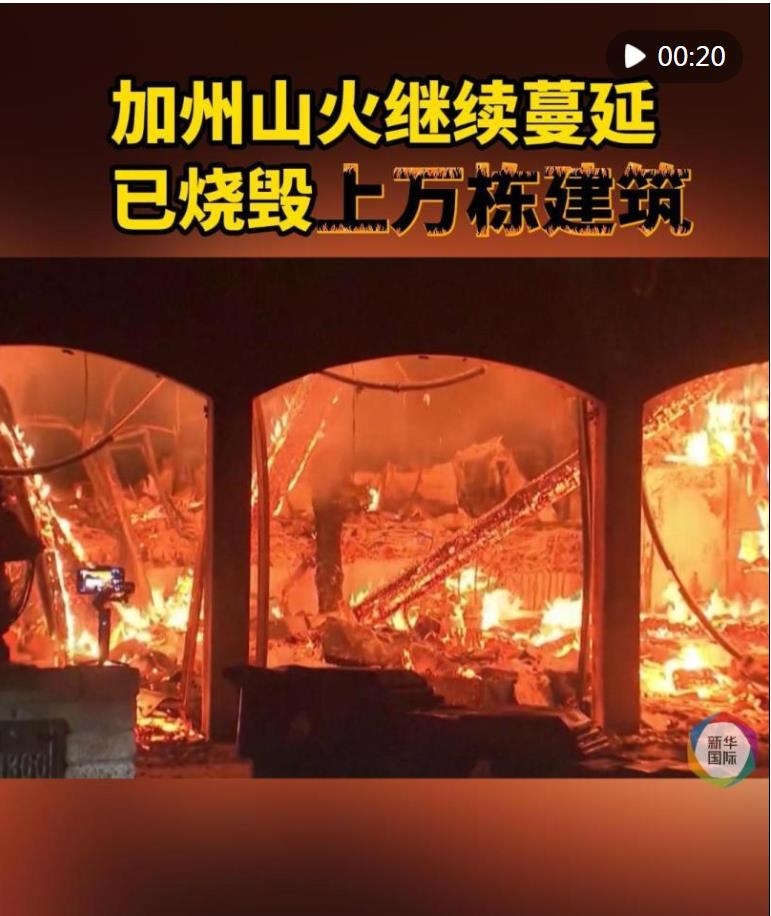 美國(guó)加利福尼亞州洛杉磯地區(qū)的山火仍在劇烈燃燒。據(jù)當(dāng)?shù)卣ⅲ刂?1日,山火已造成16人死亡,另有至少13人失蹤。