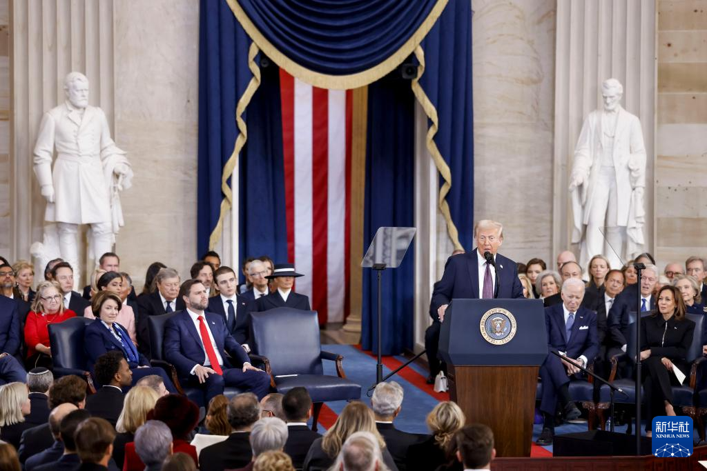 1月20日,在美國首都華盛頓國會大廈圓形大廳,特朗普在美國第47任總統(tǒng)就職典禮上發(fā)表講話。新華社/美聯(lián)