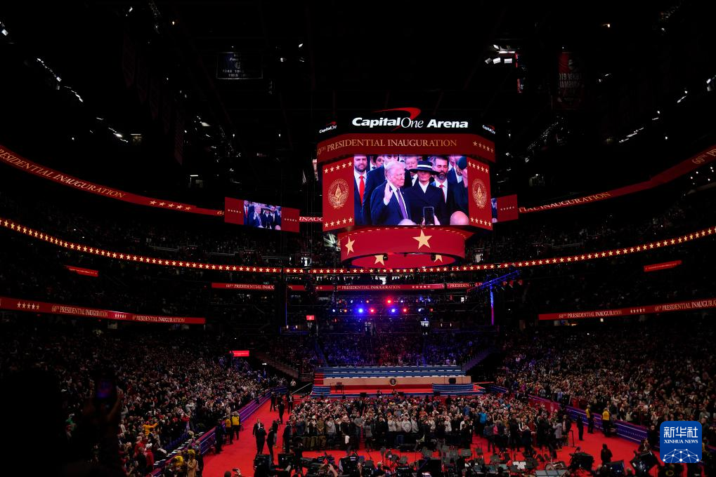 1月20日,在美國首都華盛頓第一資本體育館,人們觀看美國第47任總統(tǒng)就職典禮的轉(zhuǎn)播。新華社記者 吳曉凌 攝