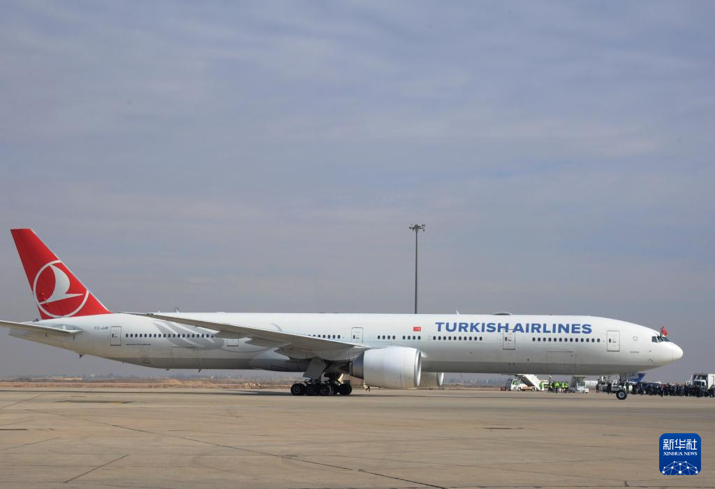 1月23日,一架土耳其航空公司客機抵達敘利亞大馬士革國際機場。新華社發(fā)(阿馬爾·薩法爾賈拉尼攝)