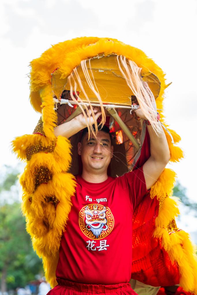 2021年,中國農(nóng)歷新年成為巴拿馬全國性節(jié)日。37歲的巴拿馬人伊萬·胡斯蒂尼亞尼,每逢春節(jié)都會和家人一起出門觀看慶祝活動,尤其是舞獅表演。出于對舞獅的喜愛,兩年前,他與兩個孩子加入擁有50多年歷史的花縣醒獅團。