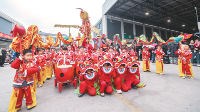 2月12日,在位于浙江杭州建德市更樓街道的建德新農(nóng)都農(nóng)產(chǎn)品批發(fā)市場內(nèi),一場特色元宵市集主題活動助力消費市場升溫。2025年1月正式投入使用的建德新農(nóng)都農(nóng)產(chǎn)品批發(fā)市場建筑面積8.29萬平方米,集蔬菜、水果、肉類、水產(chǎn)品等批發(fā)零售于一體,發(fā)揮保障商品供應(yīng)和穩(wěn)定區(qū)域物價作用。圖為元宵市集上,小朋友表演“萌娃舞龍”。