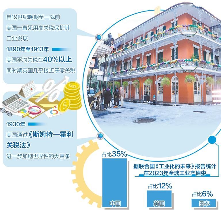 19世紀(jì)70年代后,保護(hù)性關(guān)稅逐漸成為國(guó)際政治的重要工具。美國(guó)自19世紀(jì)晚期到一戰(zhàn)之前一直采用高關(guān)稅保護(hù)自己的工業(yè)發(fā)展。1890年至1913年,美國(guó)的平均關(guān)稅在40%以上,而同時(shí)期其他主要工業(yè)國(guó)的關(guān)稅都很低,當(dāng)時(shí)的世界經(jīng)濟(jì)霸主英國(guó)更是接近于零關(guān)稅。1930年美國(guó)通過(guò)了《斯姆特—霍利關(guān)稅法》,引發(fā)其他國(guó)家針?shù)h相對(duì)的報(bào)復(fù),進(jìn)一步加劇了世界性的大蕭條。20世紀(jì)80年代,激烈的美日貿(mào)易摩擦后簽署“廣場(chǎng)協(xié)議”,被大多數(shù)學(xué)者認(rèn)為是導(dǎo)致日本后來(lái)長(zhǎng)期經(jīng)濟(jì)低迷的主要原因。在這些案例中,作為制造業(yè)大國(guó)的美國(guó)制造貿(mào)易摩擦是為了與他國(guó)競(jìng)爭(zhēng),保護(hù)本國(guó)相關(guān)產(chǎn)業(yè),避免在競(jìng)爭(zhēng)中被外國(guó)企業(yè)擊敗。