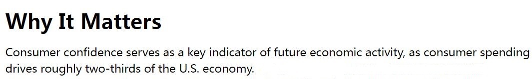 CCI既反映美國人對當前經濟狀況的評估,也反映他們對未來六個月的展望,是預測美國未來經濟前景的關鍵指標。