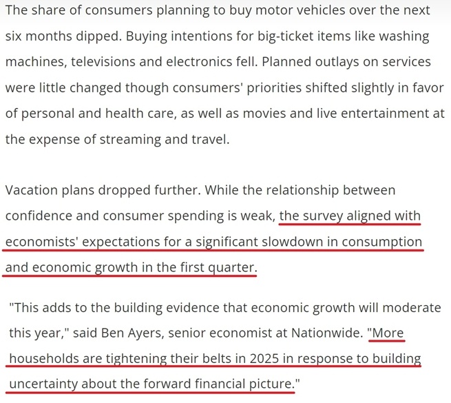 報告警告,如果美國消費者信心繼續(xù)下滑,可能會顯著影響他們的消費模式,在未來幾個月減緩經濟增長。