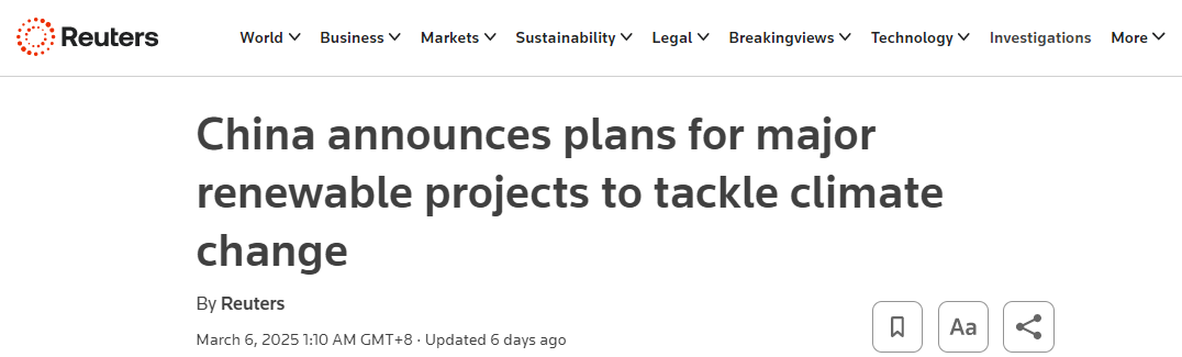 據(jù)路透社報(bào)道,中國政府5日宣布,將推出一系列重大可再生能源項(xiàng)目,力爭在2030年前實(shí)現(xiàn)二氧化碳排放峰值,并在2060年達(dá)成碳中和目標(biāo)。