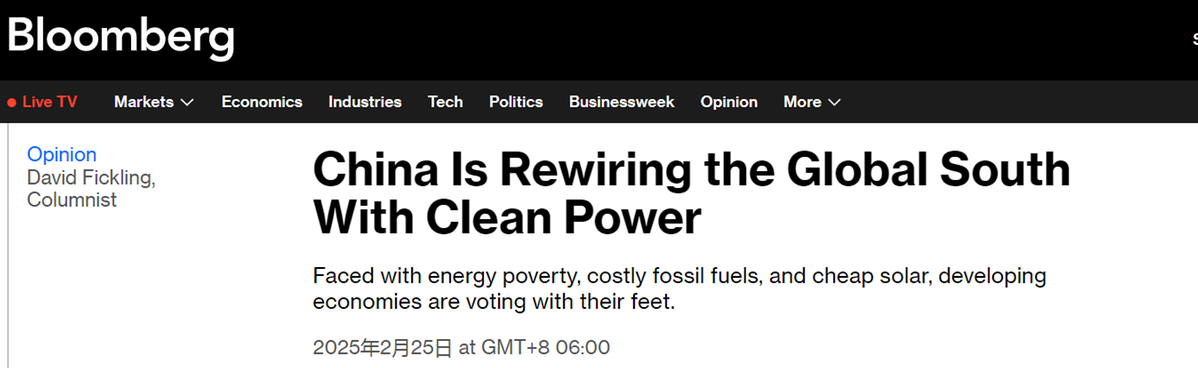 彭博社報(bào)道強(qiáng)調(diào),中國技術(shù)支持的太陽能項(xiàng)目正超過傳統(tǒng)能源的增長。