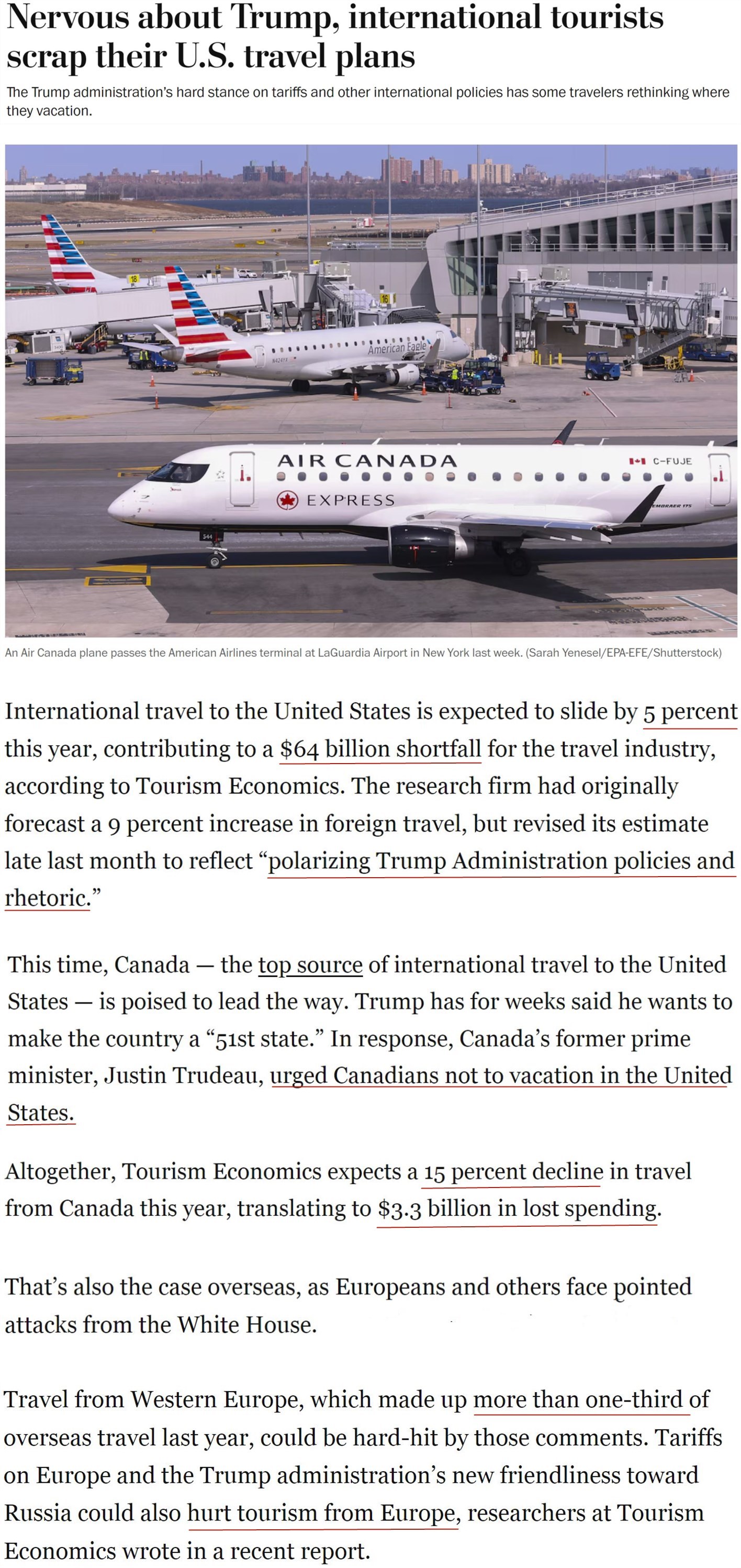 或許更讓美國始料未及的是,外國游客也被關稅“氣”跑了。